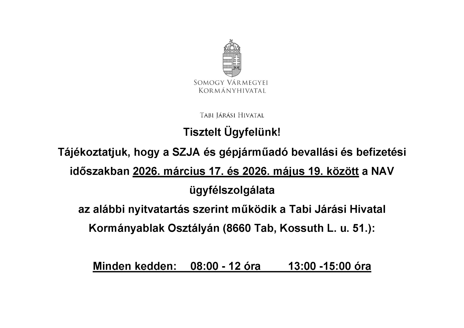 NAV ügyfélfogadás a Kormányhivatalban