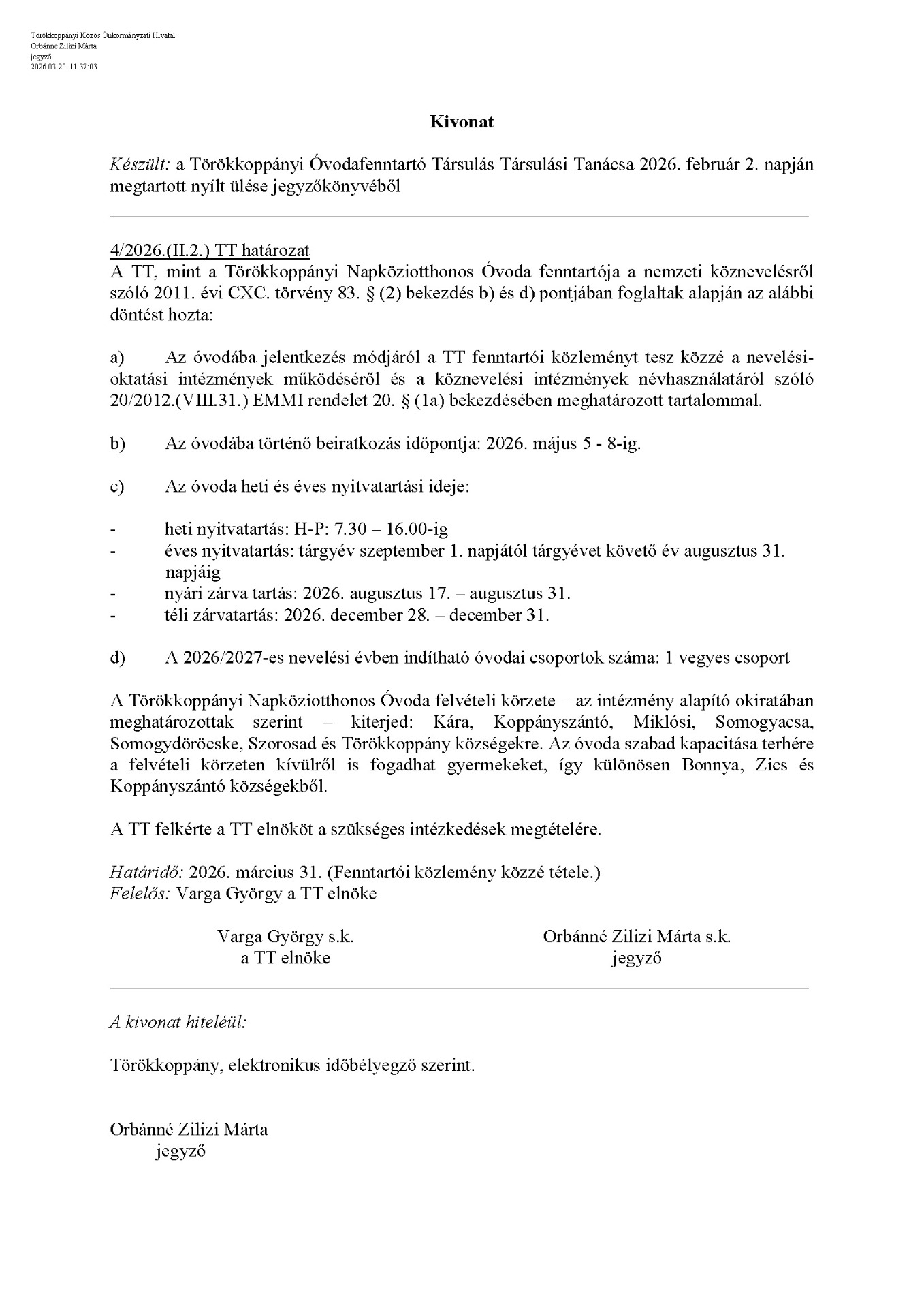 Tisztelettel: Varga György polgármester